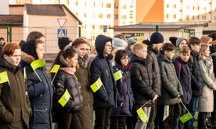 Торжественная церемония открытия поля по мини-футболу прошла при участии исполняющей обязанности начальника отдела образования, спорта и туризма Жуковец Людмилы Николаевны, заместителя директора по развитию и маркетингу ОАО «Туровский молочный комбинат» Черник Натальи Юрьевны, директора Департамента обеспечения спортивных мероприятий Ассоциации «Белорусская федерация футбола» Горовца Ивана Ивановича. Почетные гости церемонии символично перерезали ленту и отправили первый гол в ворота на новой спортивной площадке под аплодисменты юных спортсменов.